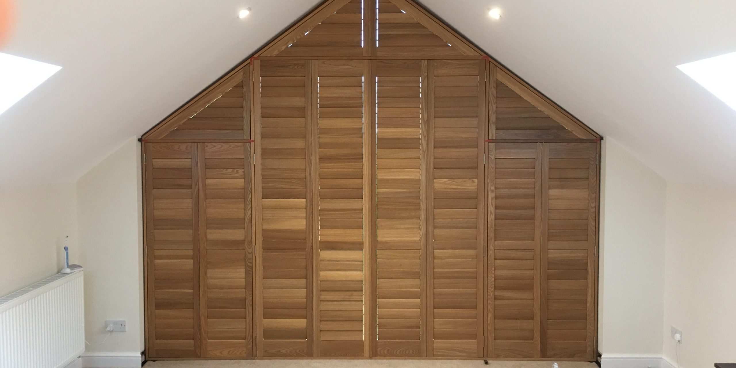 One of todays installations in Macclesfield – A Large Custom, Made-To-Measure, Apex Shutter in our Premium Elmwood Range. These images don’t do the shutters justice, in person they look even more incredible! 😀