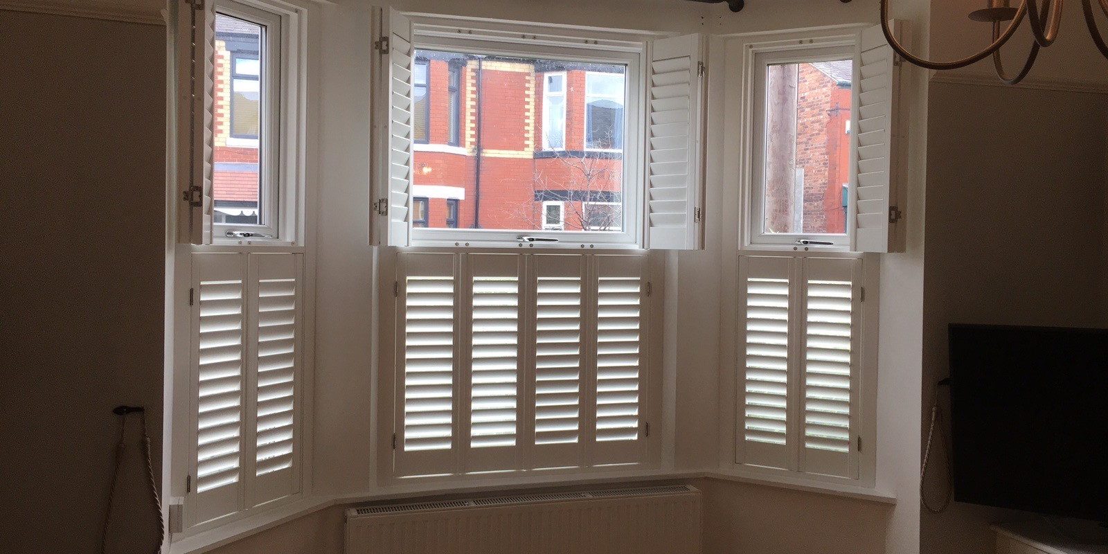 Bi-Folding tier on tier shutters throughout this happy customers home in Chorlton Cum Hardy, Manchester.
